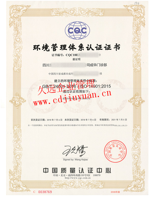 環(huán)境管理體系認(rèn)證證書(shū)