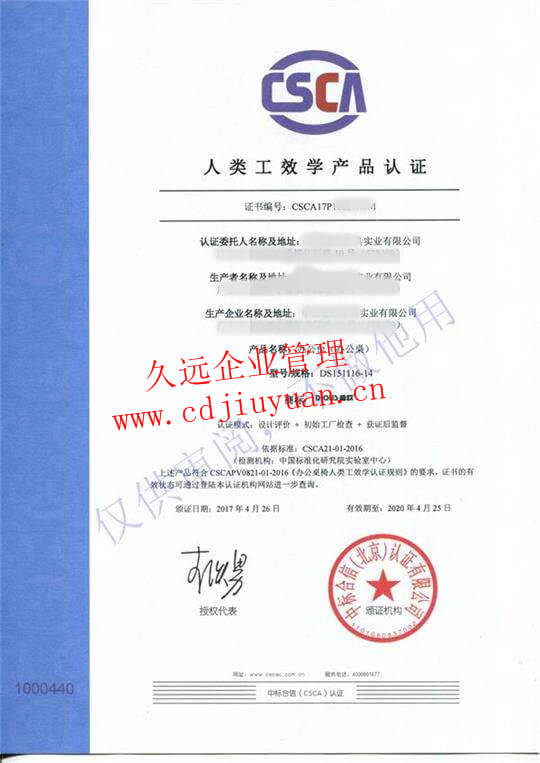人類工效學(xué)產(chǎn)品認(rèn)證證書(shū)
