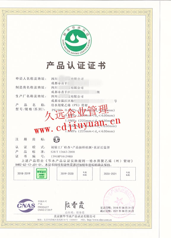 節(jié)水產(chǎn)品認(rèn)證證書(shū)