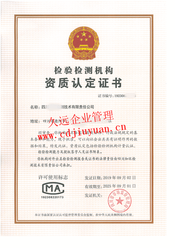 檢驗(yàn)檢測(cè)機(jī)構(gòu)資質(zhì)認(rèn)定證書(shū)(CMA)