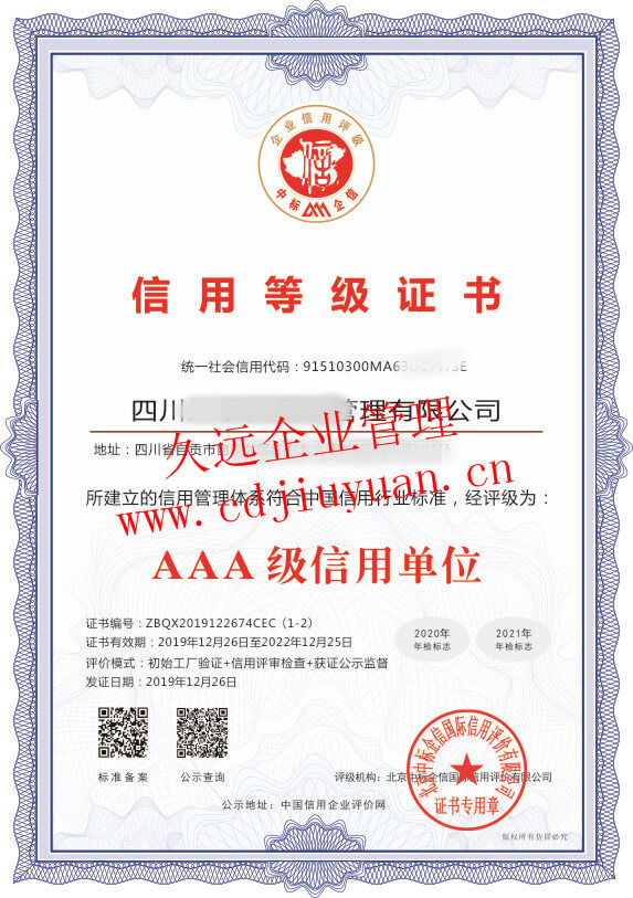 AAA級(jí)企業(yè)信用等級(jí)證書(shū)
